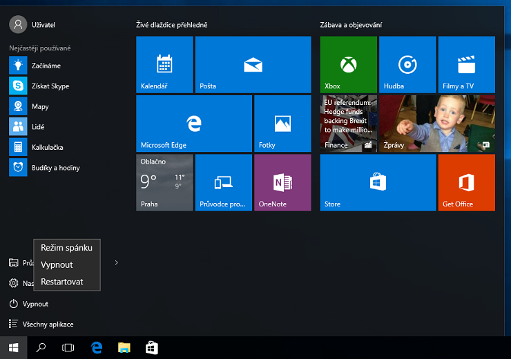 Kliknete na ikonu vypnutí počítače. Stiskněte na klávesnici klávesu SHIFT a vyberete položku Restartovat.