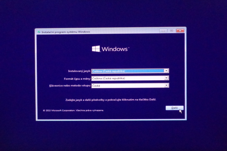 Po výzvě libovolnou klávesou potvrďte spuštění z instalačního disku