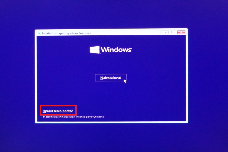 2. Otevření rozhraní pro opravy z instalačního DVD