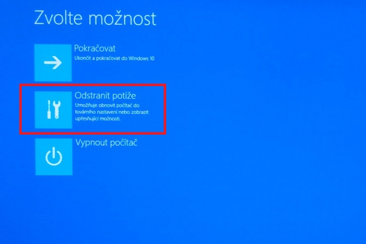 Rozhraní pro opravy lze také otevřít přímo v grafickém prostředí operačního systému. To provedete tak, že restartujete počítač a při tom držíte klávesu SHIFT.