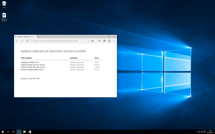 Pokud jste vybrali pouze částečné obnovení do továrního nastavení, tak budete po provedení obnovy informování, jaké součásti systému byly odebrány.